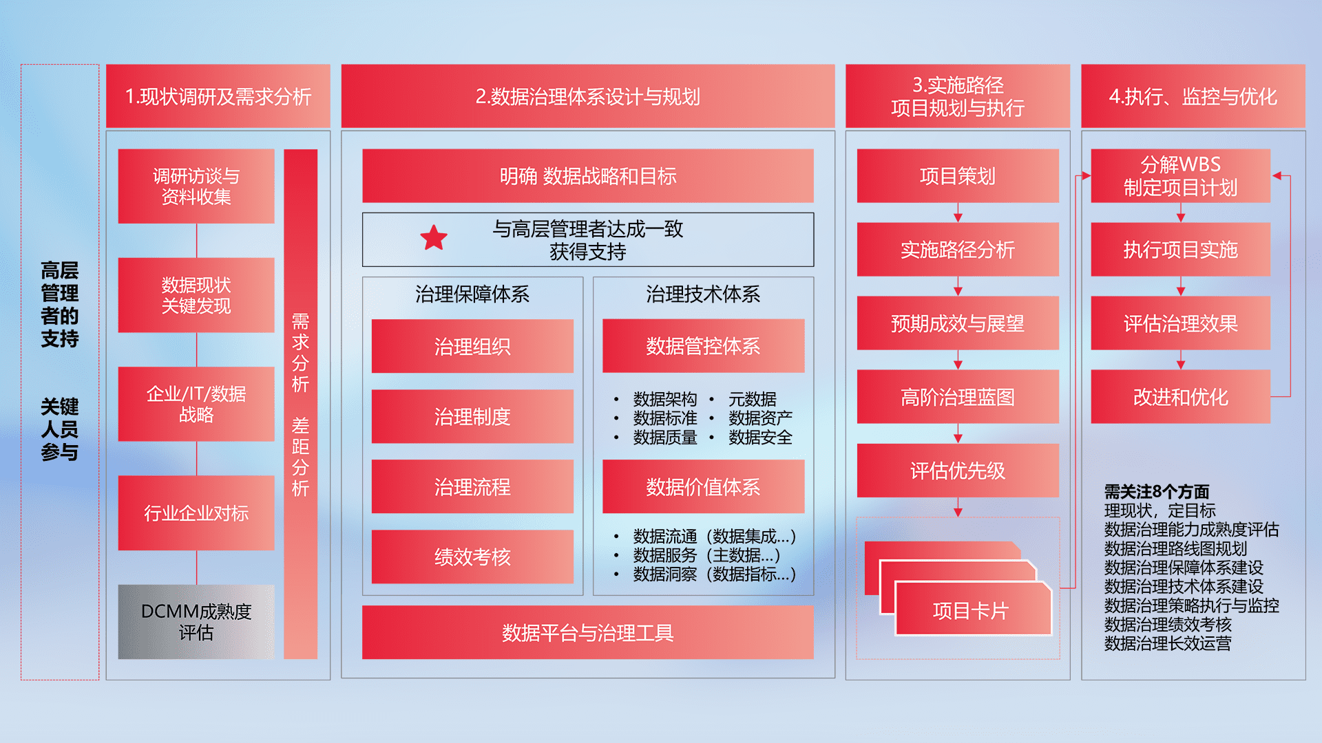 制定并执行统一的数据标准,,,规范数据定义和格式,,,,消除冗余和不一致性,,,实现跨部门和跨系统的数据一致性,,为企业提供标准化的数据基础。。。