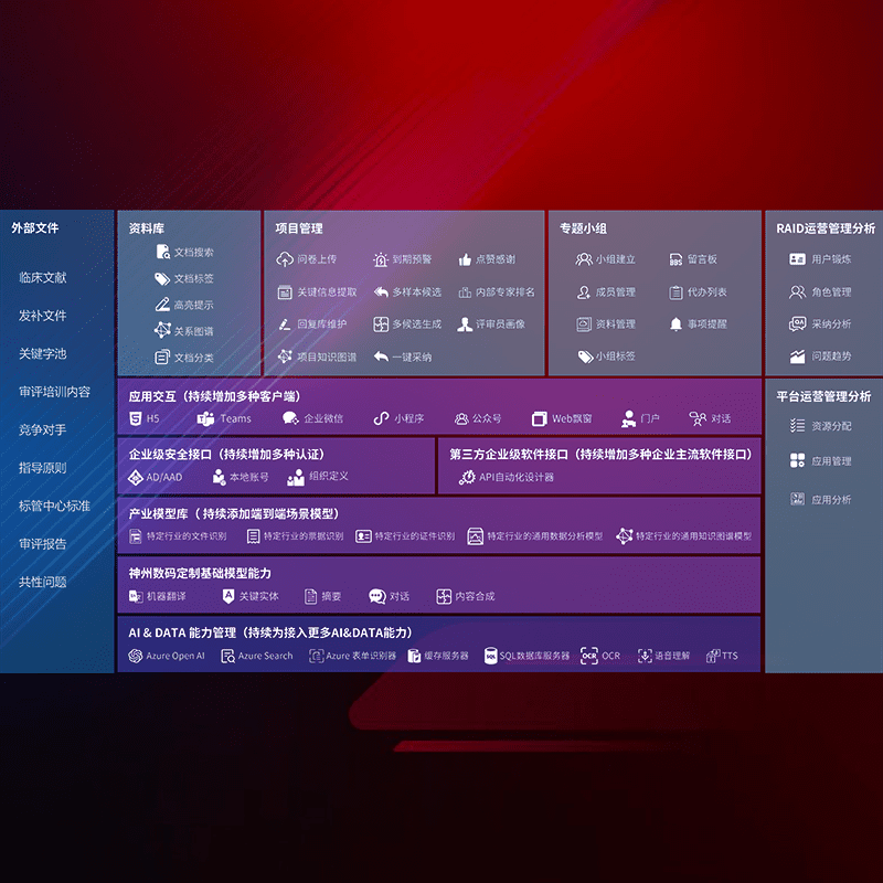 医疗器械产品上市前,,,,要熟悉严格与繁复评审标准,,,整理分析监管机构指导文件中的海量信息。。企业急需一个智能化解决方案,,,提升知识管理效率,,,提高评审通过率,,,以提升其市场竞争力。。。